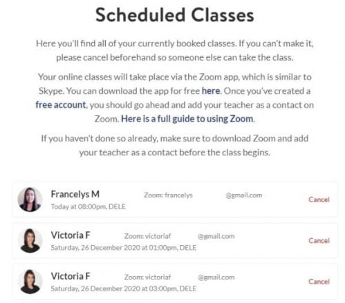 It’s really easy to cancel classes. All you need to do is navigate to your Scheduled Classes tab and click “Cancel” next to the class you can’t make. That’s it! I love how easy scheduling can be with Baselang. There’s never any pressure.