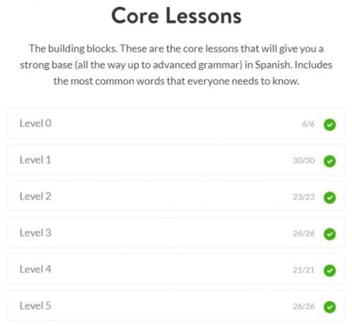 In both the Baselang Real World and Baselang DELE programs, there are levels that help you track your progress. The Baselang levels are a little different in each program though. The Baselang Real World program has 9 levels, from complete beginner (level 1) to completely conversational (level 9). The DELE program follows the European reference levels and goes from B1 to C2.