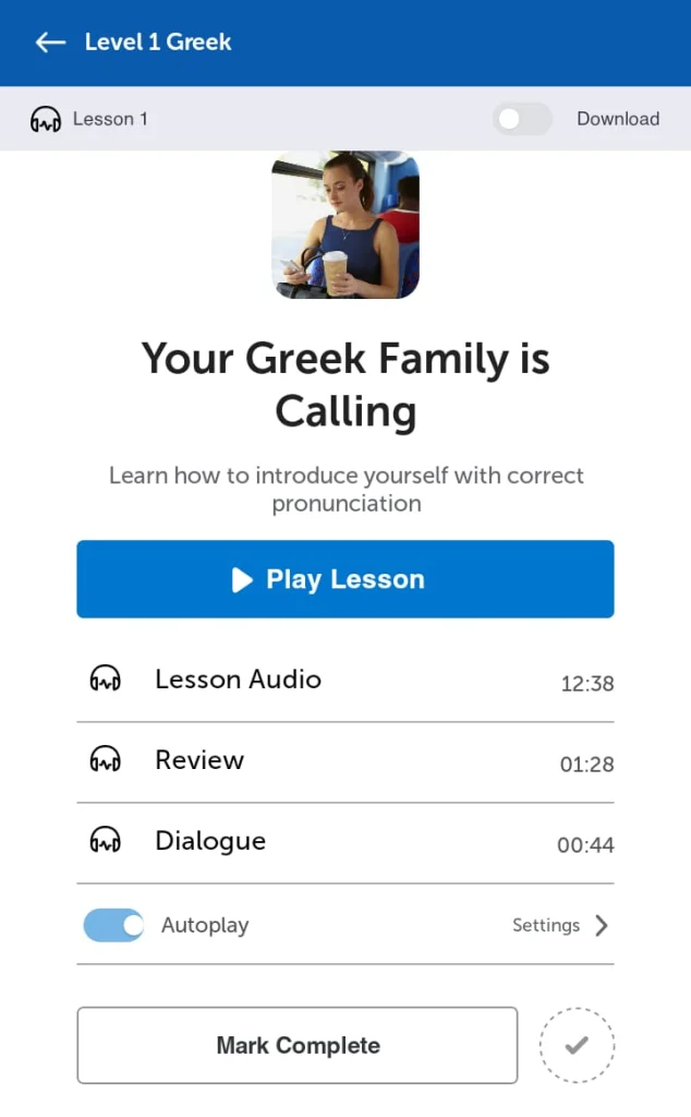 GreekPod101 is a good choice for everyone who wants to start learning the language. It has interesting audio and video lessons, as well as many additional resources. It has extensive content to help you understand the basics, so It’s best for beginners. If you’re more advanced or want to enhance your conversational skills, you might want to explore other options.