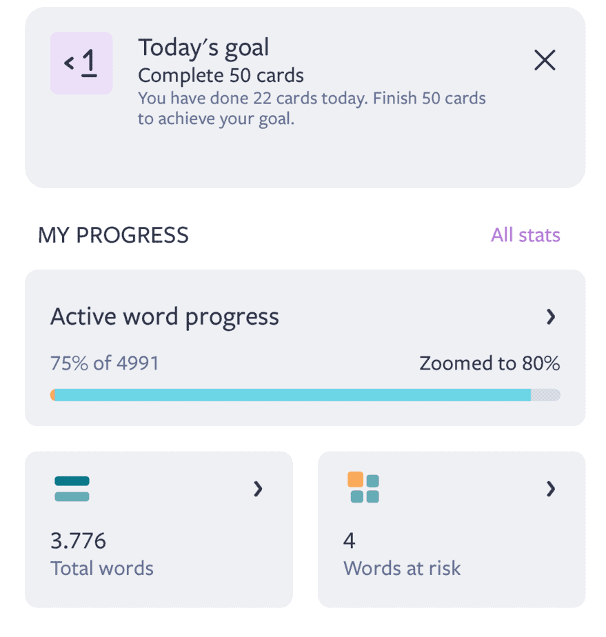 However, I did find myself with questions about grammar that the app couldn’t answer. I think that Lingvist would be most helpful if you use it with another app that teaches a more comprehensive approach to language learning.