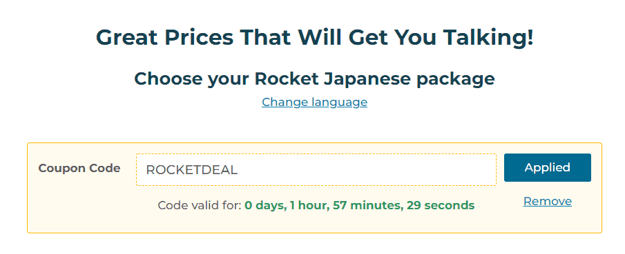 There is no need to pay full price for Rocket Japanese. They are constantly offering discounts and other specials. As soon as you sign up, you will receive a discount code. I was also offered other discounts during my trial period.