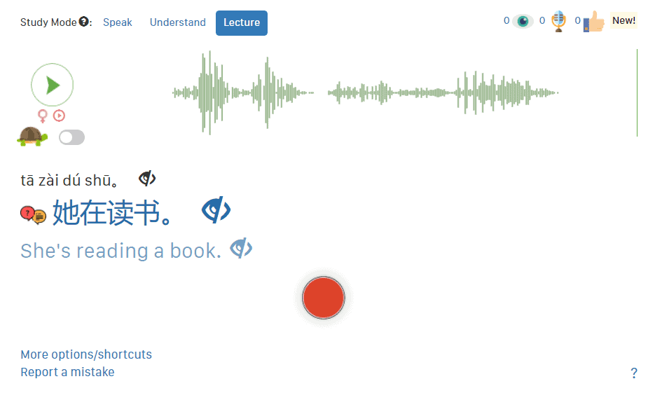 For the Speechling Chinese course, you can choose if you want to learn Traditional Chinese or Simplified Chinese. As with the Japanese course, it would be better if you already knew some basic Chinese characters before starting. But the Chinese flashcards include the phonetic pronunciation, so you can understand a little more clearly what you are saying. Pronunciation is a difficult aspect of Chinese, so I think Speechling provides value in this area. You can combine it with other apps to learn Chinese to get a more well-rounded approach, too.
